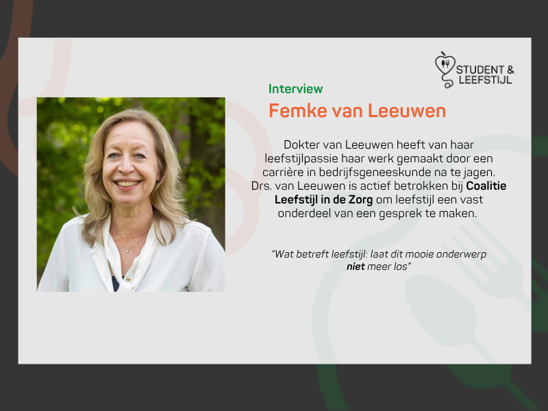 Dokter Femke van Leeuwen is bedrijfsarts, maar vooral ook een gepassioneerd voorvechter van gezonde leefstijl en preventie op de werkvloer. In dit interview vertelt zij openhartig over haar carrière pad, haar persoonlijke drijfveren en hoe zij haar passie voor gezondheid… Lees verder »Interview drs. Femke van Leeuwen